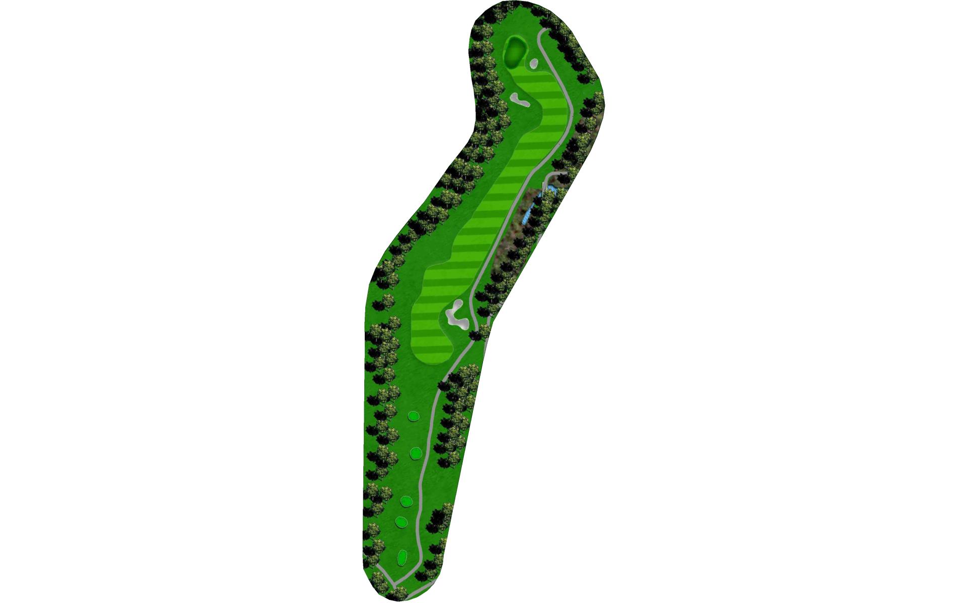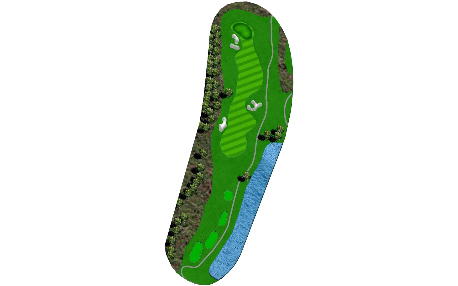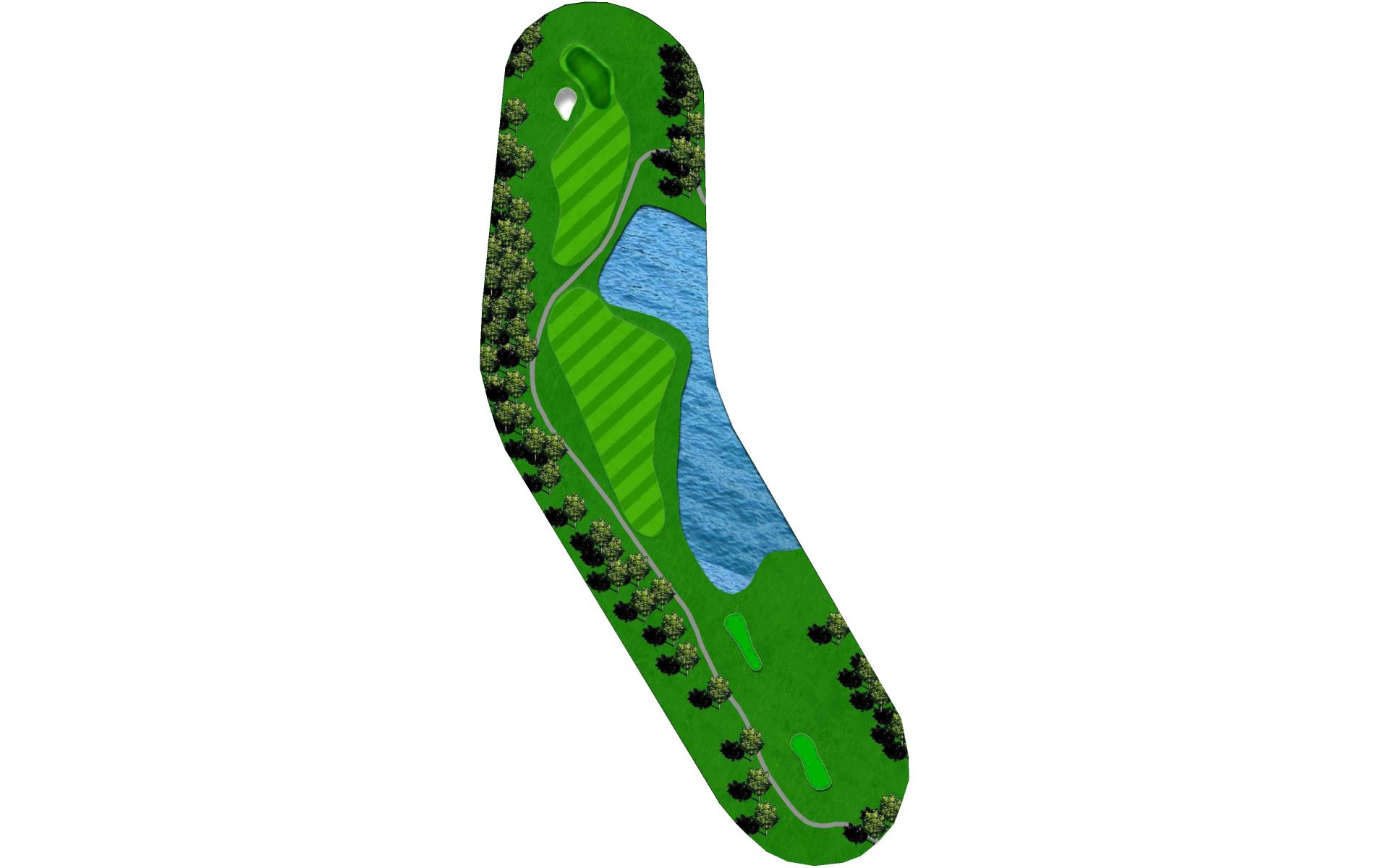 A penalty area left and bunker right guard the green on the picturesque par 3. On the putting surface, a large slope in the middle will challenge even the best putters.