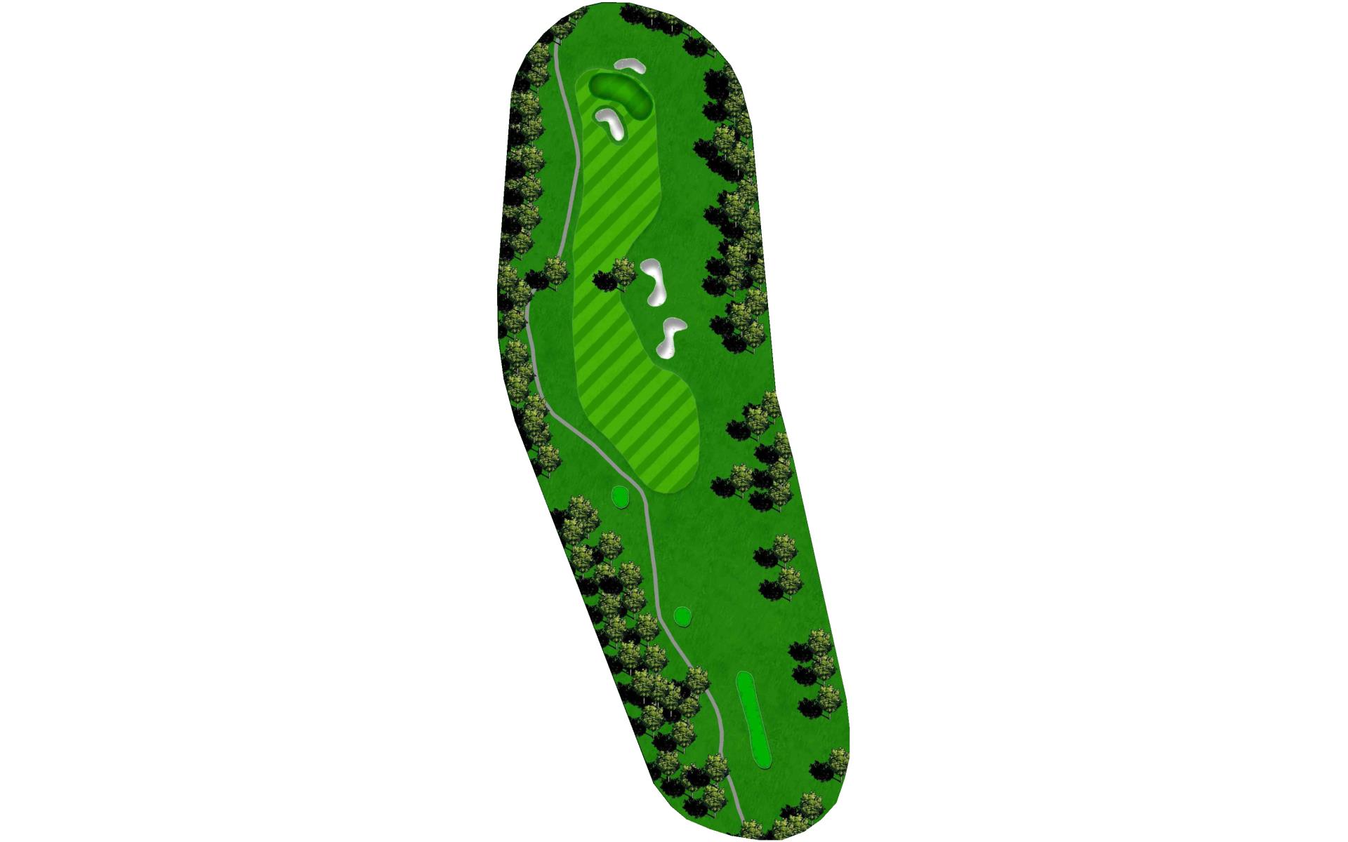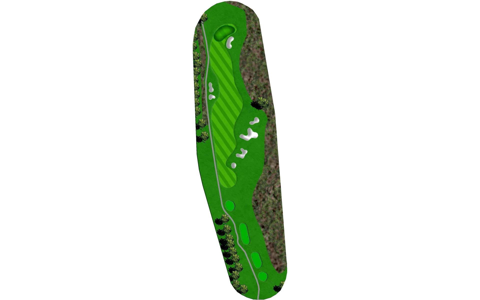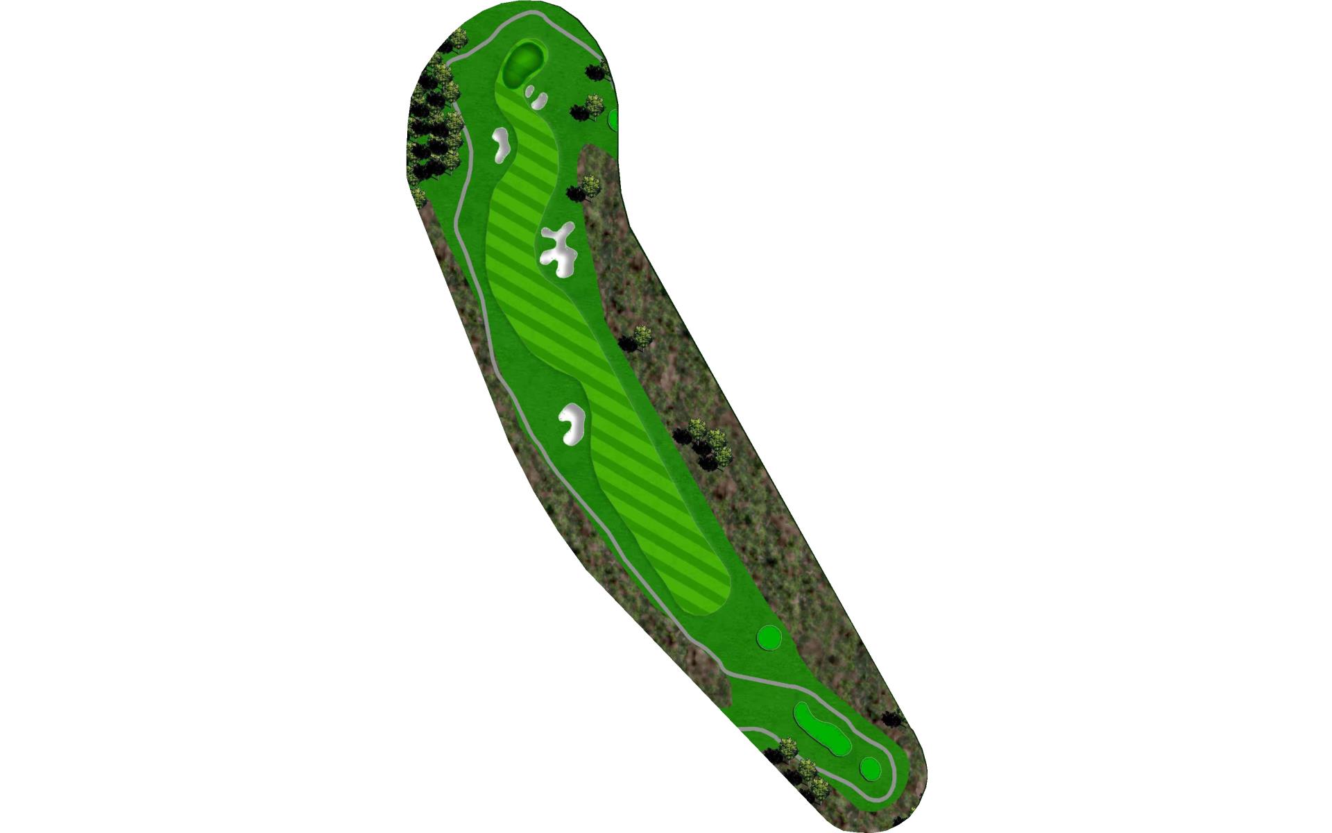 The finishing hole at Blackjack is an uphill par 4. A solid play off the tee is to aim between the bunkers. Approach shots play into a green that heavily sloped from back-to-front and is guarded by two bunkers.