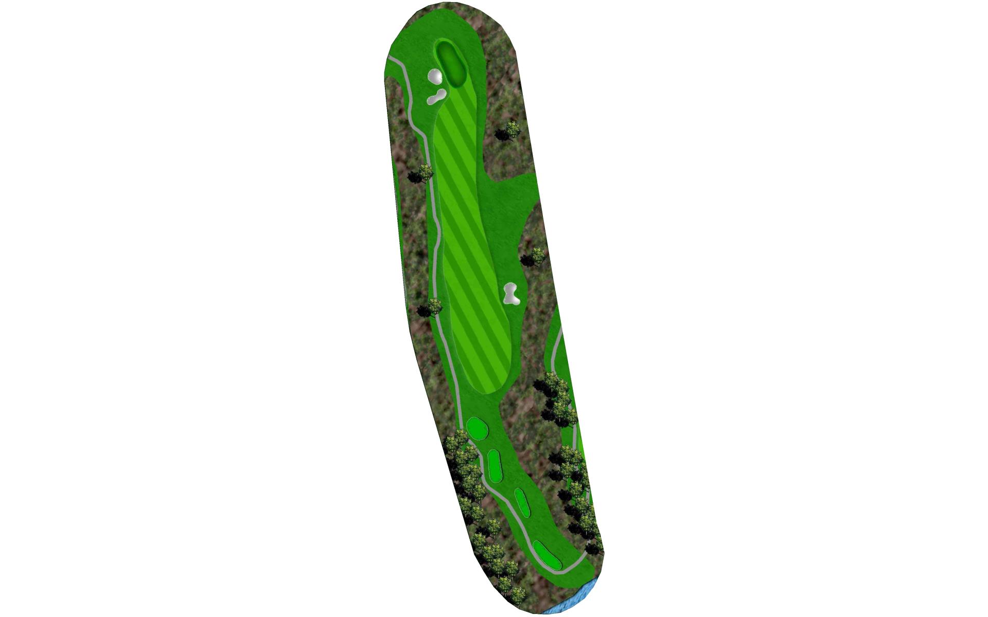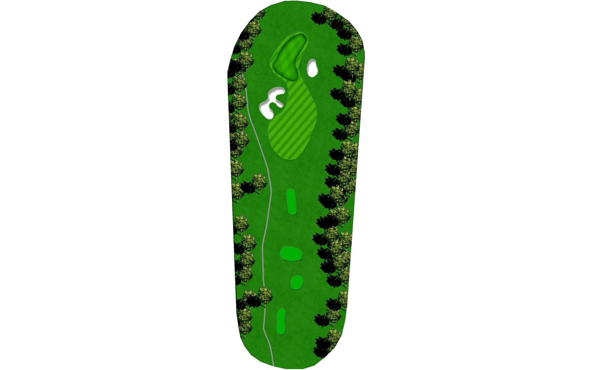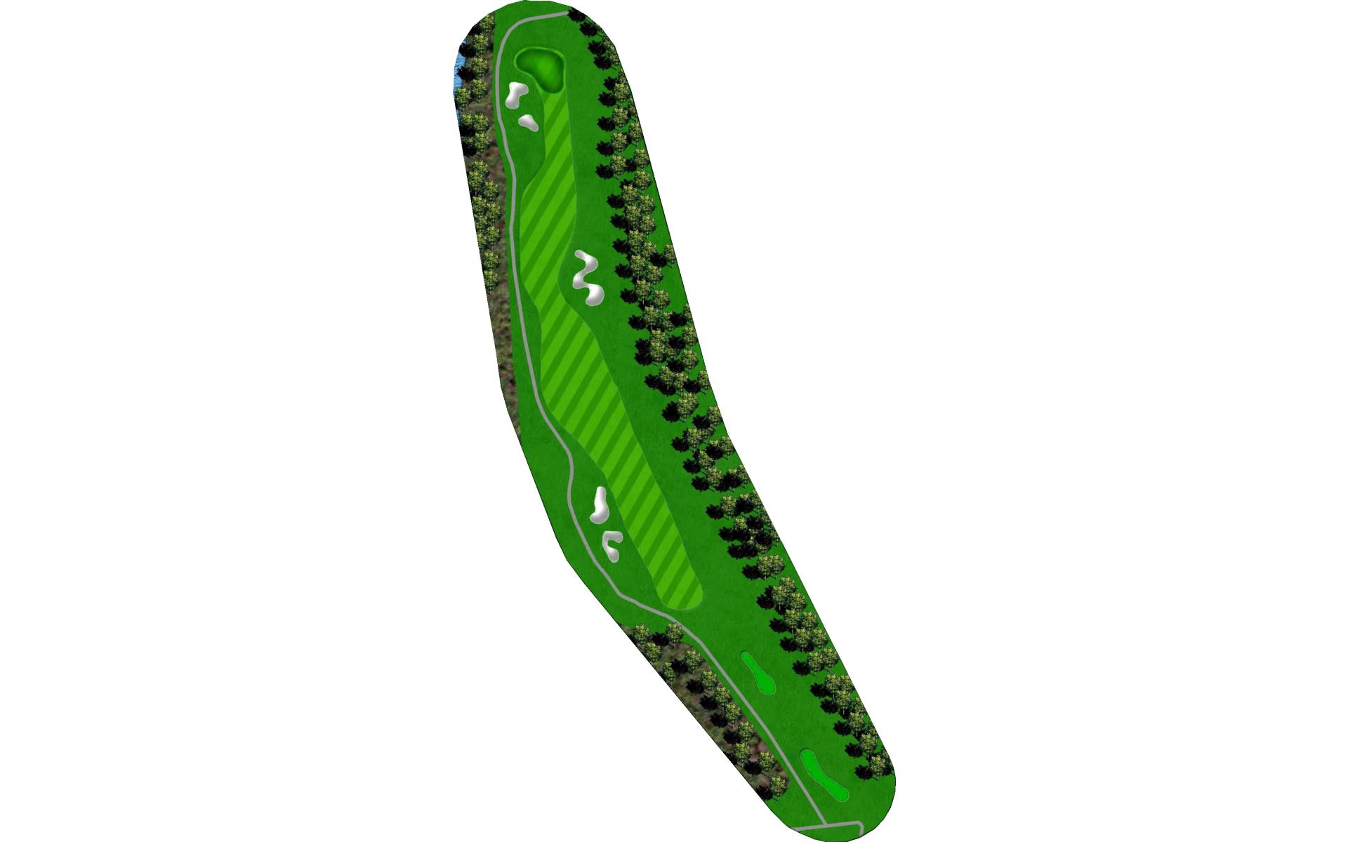 The finishing hole at Blackjack is an uphill par 4. A solid play off the tee is to aim between the bunkers. Approach shots play into a green that heavily sloped from back-to-front and is guarded by two bunkers.