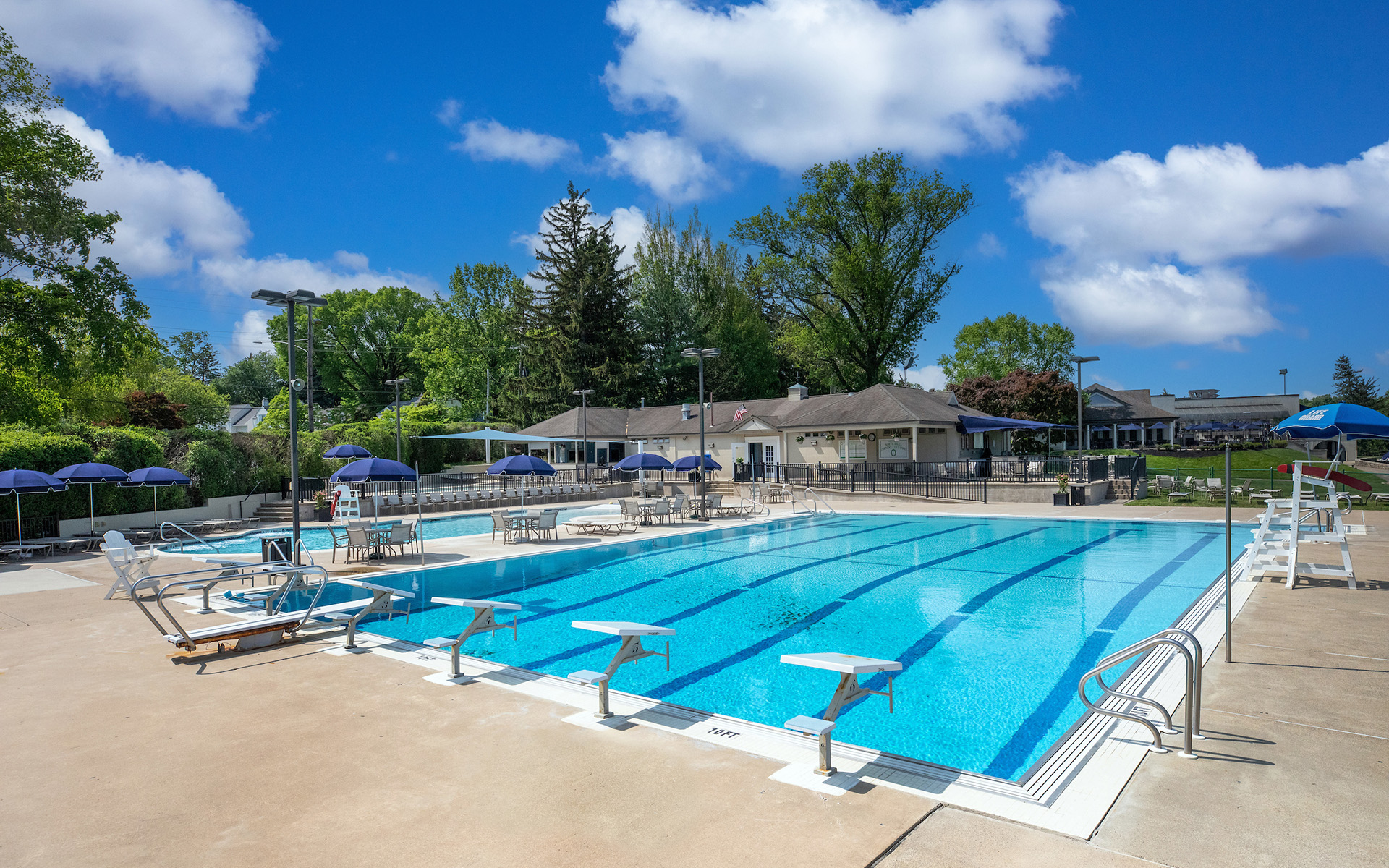 The North Hills Country Club pool is the place to be during the summer months. The recently constructed aquatics area offers North Hills Members a unique swimming opportunity. Whether for fitness or fun, the Club’s three state-of-the-art swimming pools provide enjoyment, as well as dining options and a poolside bar to enjoy a cool drink on hot days. Our heated competition lap pool provides the perfect opportunity for the fitness enthusiast or master swimmer ample training area, while our resort-style zero-entry pool allows swimmers of all levels the ability to cool down on the hottest of days. For our newest swimmers, the wading pool provides a safe and enjoyable atmosphere for parents and toddlers. All pools are open on a daily basis in season and the Club offers a variety of poolside events for evening and weekend fun.