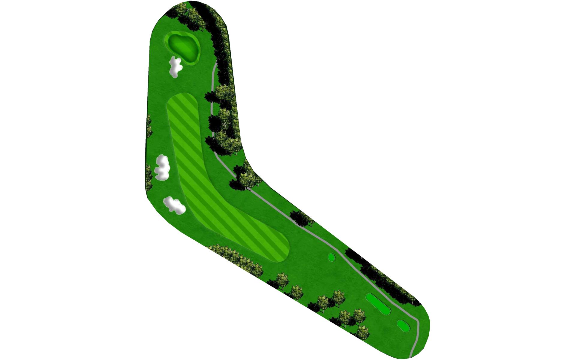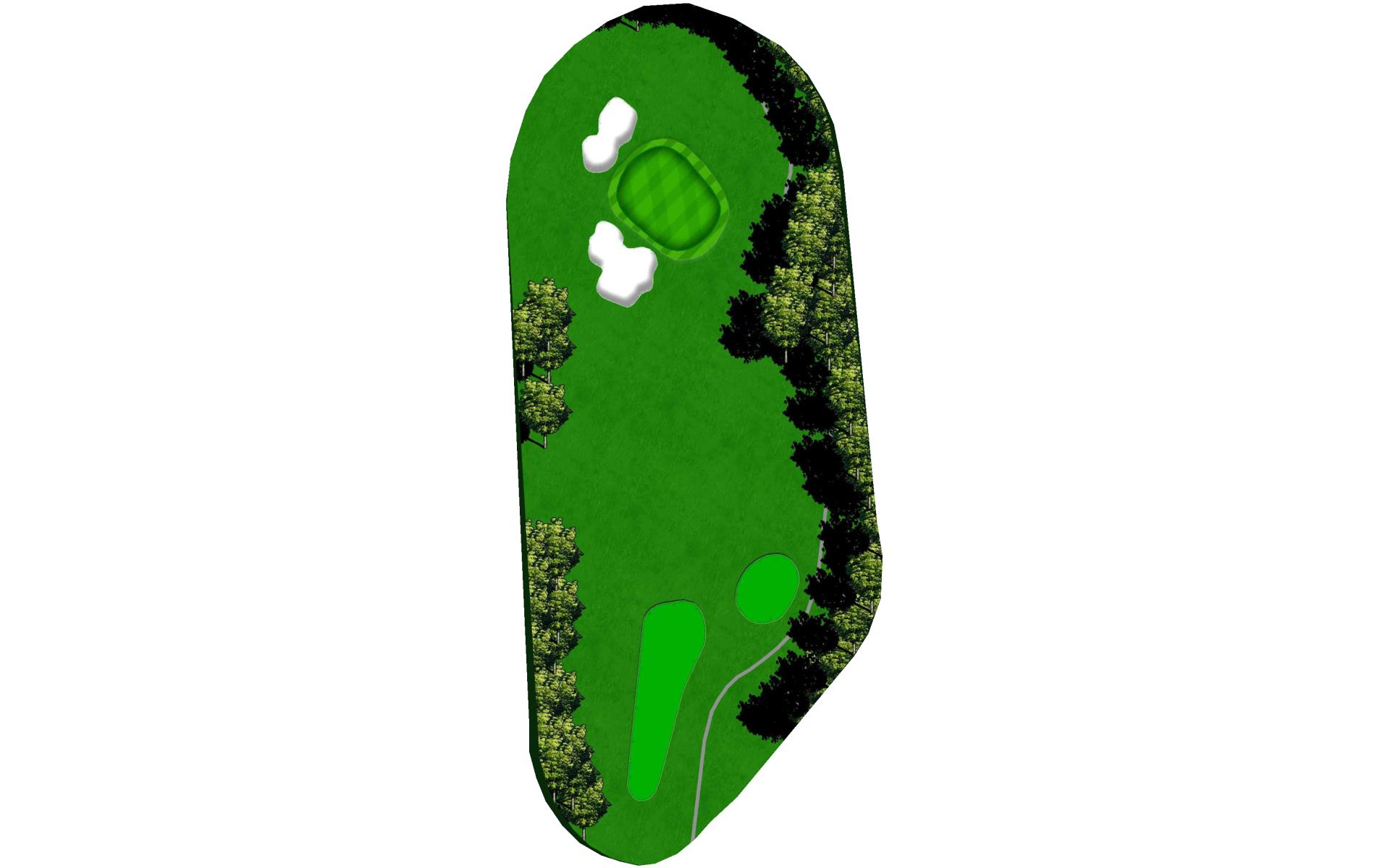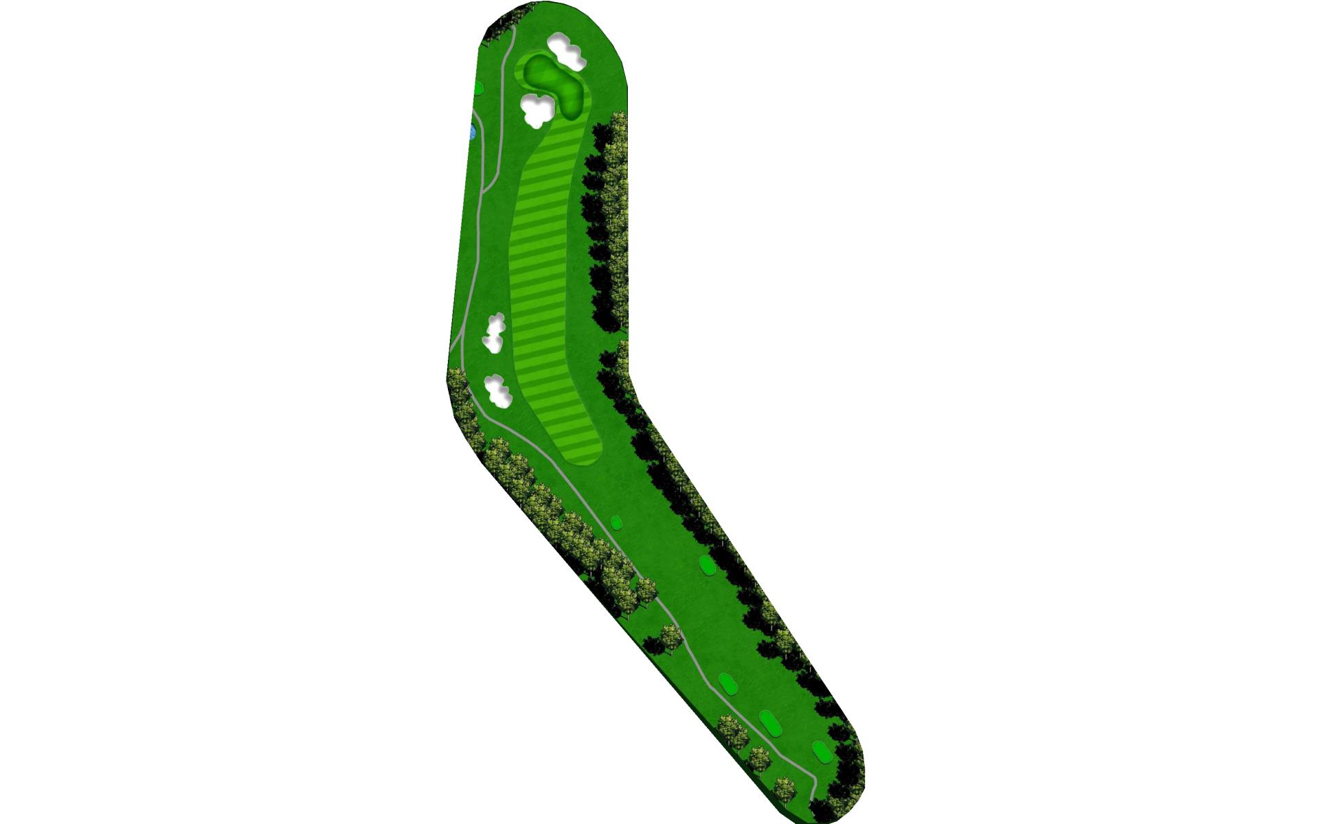 Slight dogleg right going uphill. Large green with multiple slopes and tiers.