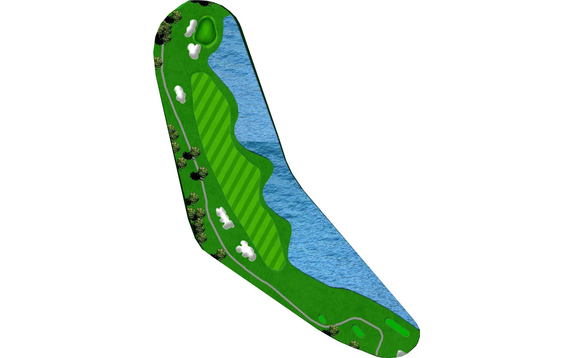 Running along the lake's edge, this par 4 turns gently to the right. The fairway runs out at around 140 yards. The approach shot is all carry over water with water protecting left and long of the green.